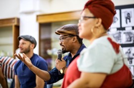 “Once the project began, we selected a core team of Oudtshoorn-based artists, poets, arts leaders, writers, musicians, researchers, facilitators and educators . These participants were guided over the four-month ‘first phase’ of the project through a series of weekly workshops to introduce the project methodologies and processes.
