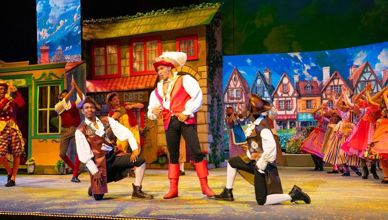 Let’s start with the costumes! Those colours simply smash it! It’s bright and cheery with a strong Italian flavour of green, red and white running through, but that’s augmented by the brightest brights so that every one on that stage is shining as bright as can be. It’s as happy as well as hip, which immediately sets the tone and the flavour of what’s to come.