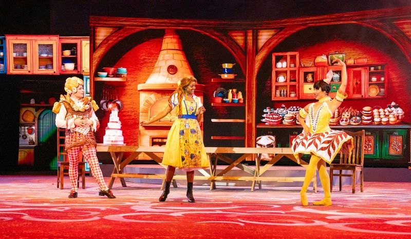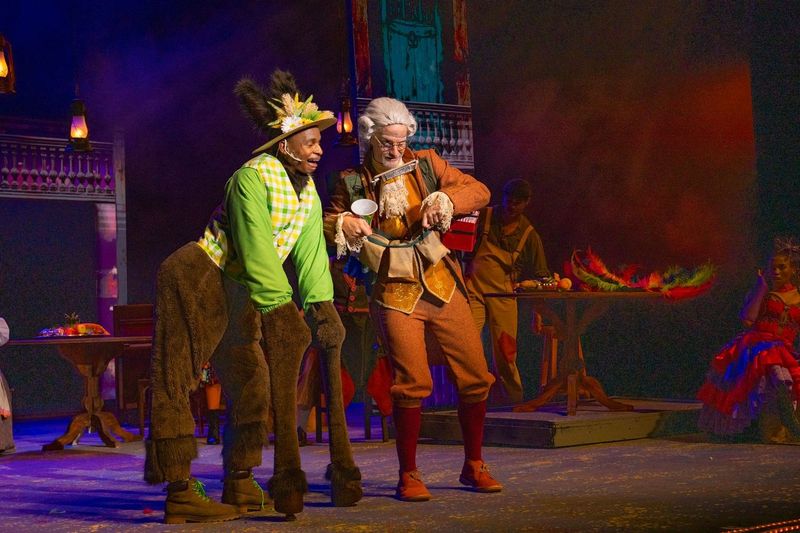There’s the cheery Pinocchio (Katlego Nche) and his perky puppet friend (Noluthando Mathebula), Jiminy Cricket (Sandi Dlangalala) with the exquisite voice, the two foxy madames (Brenda Radloff and Camilla Waldman), so deliciously delightful, old hands Mark Richardson and Luciano Zuppa who skate through a cast of characters with ease, as well as another wise and wittty veteran Tiaan Rautenbach who knows how to dazzle as Dame Arletti Spaghetti – and how could you not with a name like that! There’s also Gina Shmukler’s sassy Bella Bouboulina, the Blue Fairy, and a supporting cast who bounce with the exuberant energy that keeps the audience on their toes.